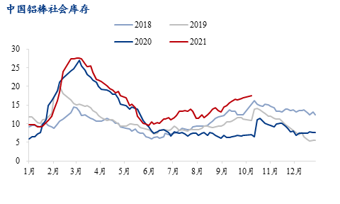 今年節(jié)前鋁棒及鋁錠庫存都出現(xiàn)了反常累庫的現(xiàn)象,主因是9月以來限電對下游的邊際影響逐漸超過上游,下游開工率出現(xiàn)反常下滑,同時型材廠較差的表現(xiàn)對電解鋁廠形成負反饋,鑄錠比例增加,二者疊加造成庫存累積。按照目前的下游表現(xiàn)來看,只有當鋁價合理回調(diào),或橫盤震蕩后下游逐漸接受較高鋁價,消費端才能夠回歸旺季增長趨勢。